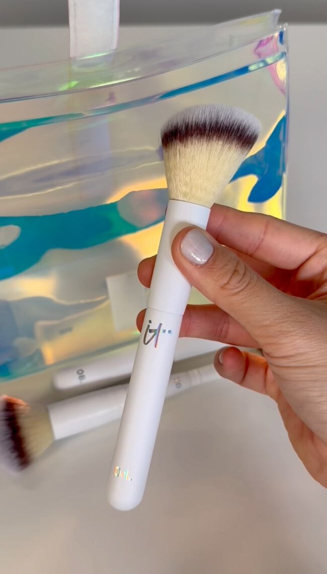 - ✓ Luxe Makeup Case: Beautifully store your brushes and makeup essentials in style with a foldable, dazzling holographic carrying case for travel-ready application.
